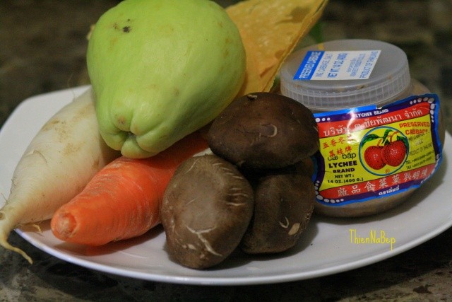 - Củ cải trắng, củ cải đỏ, su su, táo đỏ rửa sạch cắt khúc vừa ăn.